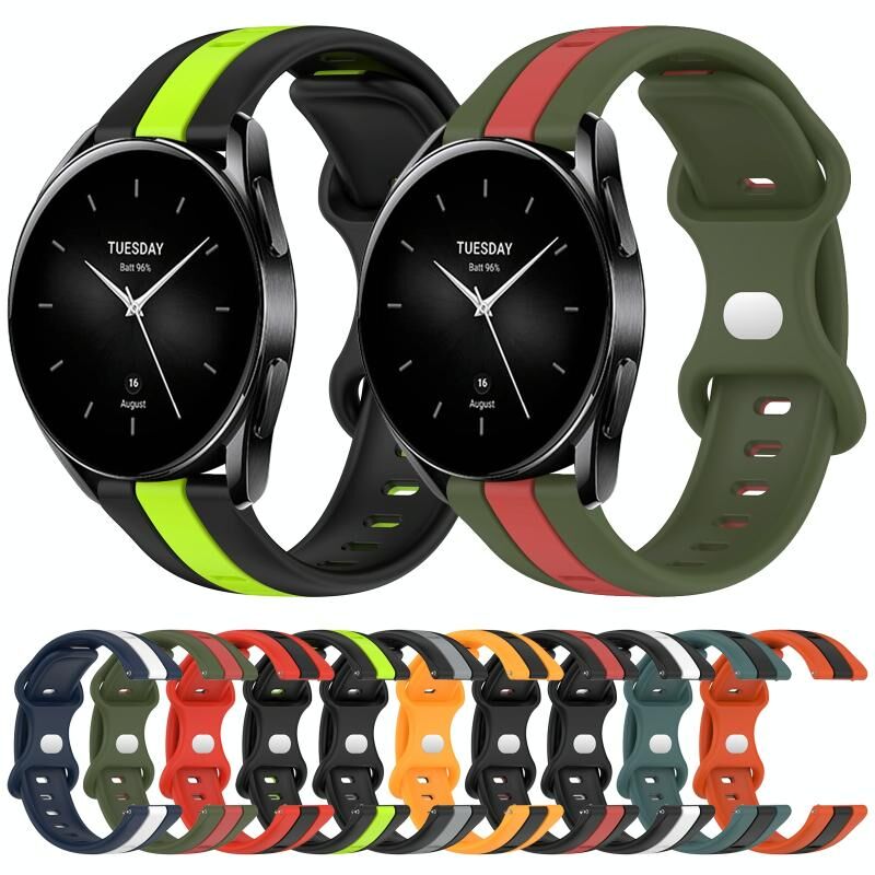 Για το Xiaomi Watch S2 46mm 22mm Butterfly Buckle Two-Color Silicone Watch Band (Μαύρο + Πράσινο)