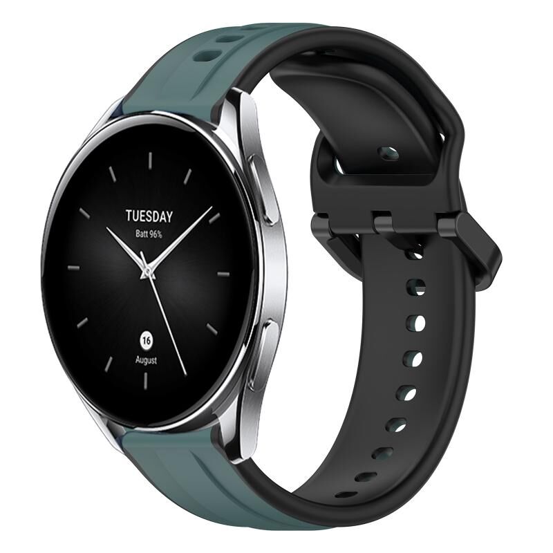 Για το Xiaomi Watch S2 46mm 22mm Convex Loop Two-Color Silicone Watch Band (Olive Green + Black)