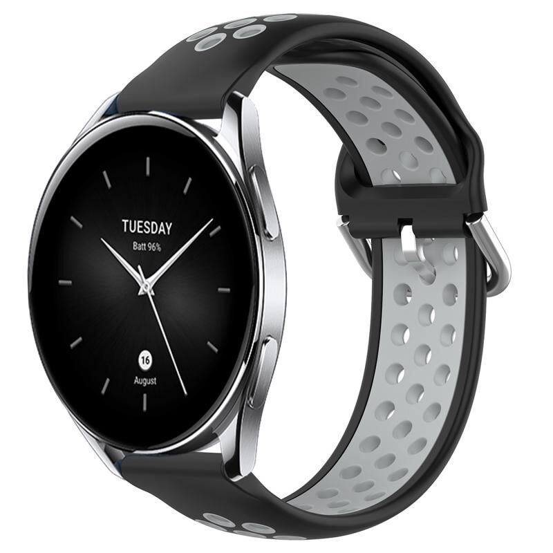 Για το Xiaomi Watch S2 46mm 22mm Διάτρητη αναπνεύσιμη αθλητική ζώνη ρολογιού σιλικόνης (μαύρο + γκρι)