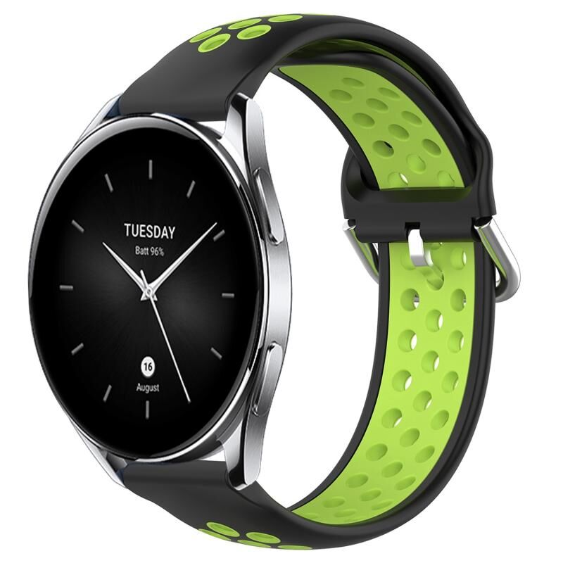 Για το Xiaomi Watch S2 46mm 22mm Διάτρητη αναπνεύσιμη αθλητική ζώνη ρολογιού σιλικόνης (Μαύρο+Lime)