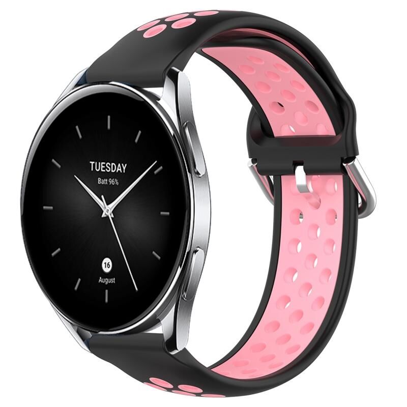 Για το Xiaomi Watch S2 46mm 22mm Διάτρητη αναπνεύσιμη αθλητική ζώνη ρολογιού σιλικόνης (μαύρο + ροζ)