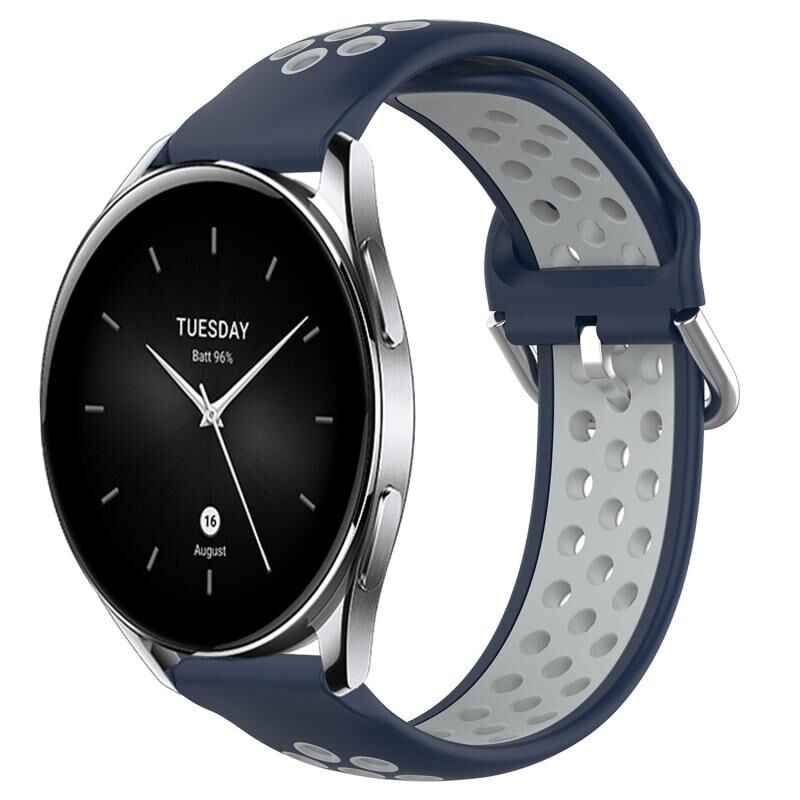 For Xiaomi Watch S2 46mm 22mm Perforated Breathable Sports Silicone Watch Band(Midnight Blue+Gray)