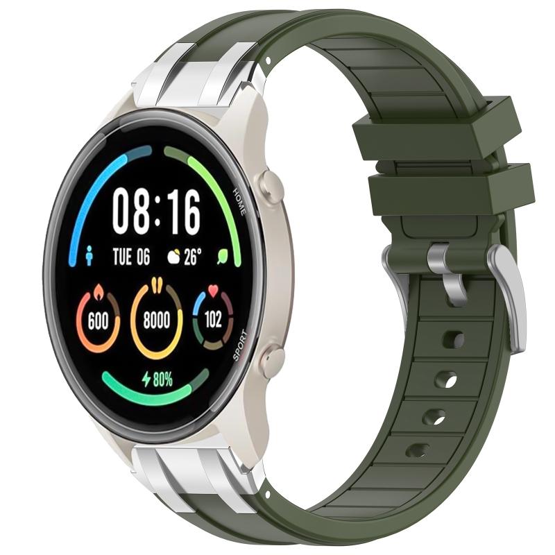 For Xiaomi Watch Sport 22mm Quick Release Silver Buckle Royal Silicone Watch Band(Olive Green)