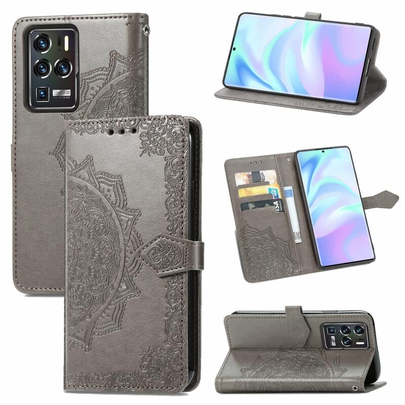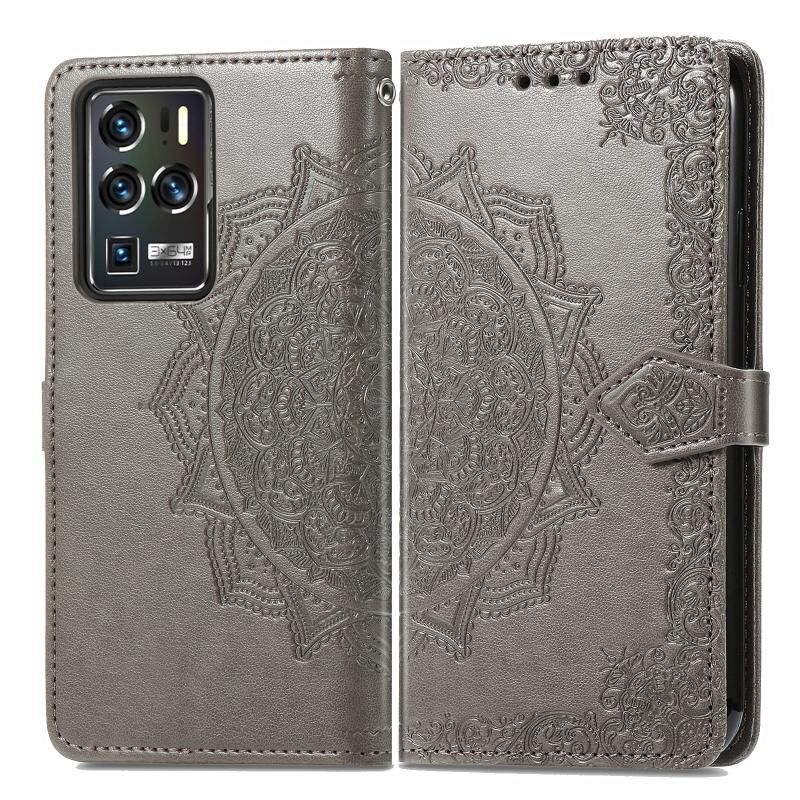 Για ZTE 30 Ultra 5G Mandala λουλούδι ανάγλυφο οριζόντια Flip δερμάτινη θήκη με βραχίονα / υποδοχή κάρτας / πορτοφόλι / κορδόνι (γκρι)