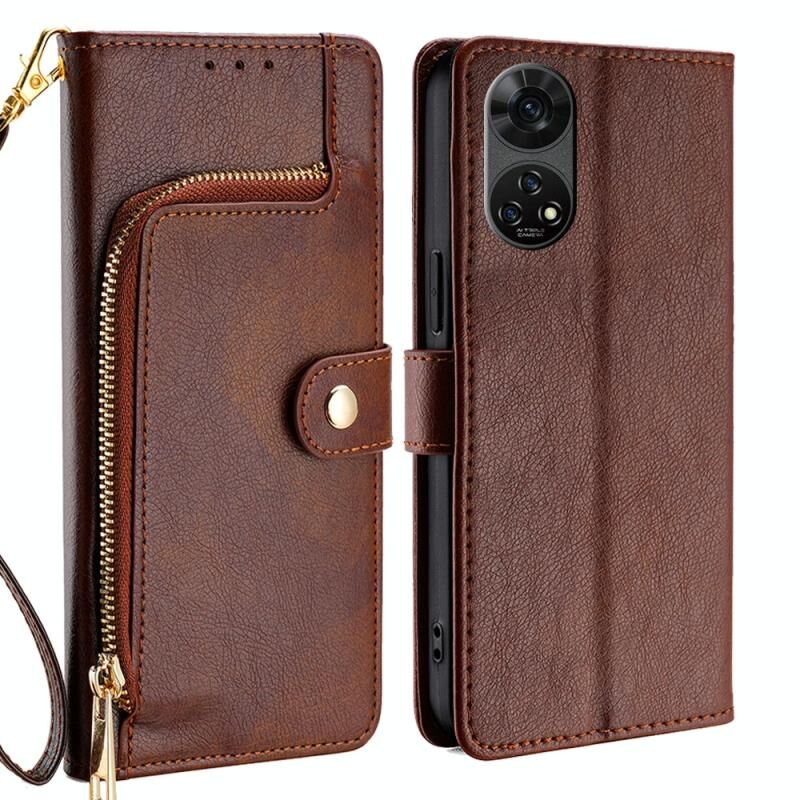 Για ZTE Anshin Οικογένεια φερμουάρ τσάντα δερμάτινη θήκη τηλεφώνου (καφέ)
