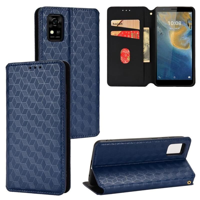 For ZTE Avid 589 / Z589 / Z5158 Cubic Grid Texture Flip Leather Phone Case(Blue)