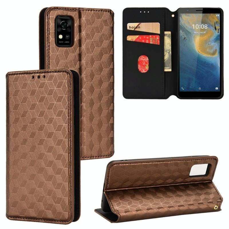 For ZTE Avid 589 / Z589 / Z5158 Cubic Grid Texture Flip Leather Phone Case(Brown)