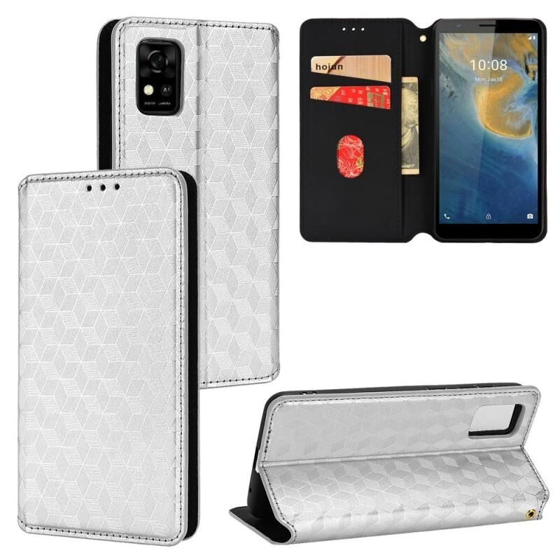 For ZTE Avid 589 / Z589 / Z5158 Cubic Grid Texture Flip Leather Phone Case(Silver)