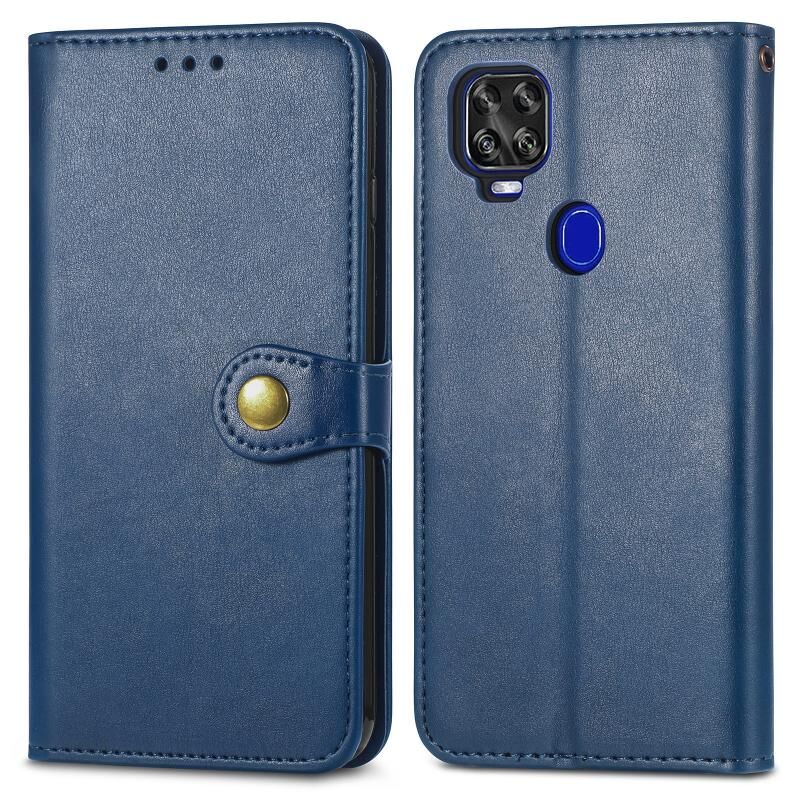 Για ZTE Axon 11 SE 5G Αμιγές χρώμα δέρμα αγκράφα υπόθεση τηλεφώνου με κορδόνι & πλαίσιο φωτογραφιών & υποδοχή κάρτας & πορτοφόλι & λειτουργία Stand (μπλε)