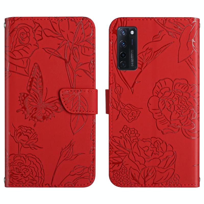 For ZTE Axon 20 4G / 5G Skin Feel Butterfly Peony Embossed Leather Phone Case(Red)