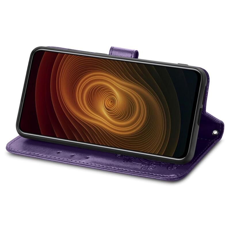 Για ZTE AXON 20 5G Four-leaf Clasp ανάγλυφη αγκράφα Κινητό τηλέφωνο Προστασία Δερμάτινη θήκη με κορδόνι & υποδοχή κάρτας & πορτοφόλι & λειτουργία βραχίονα (μωβ)