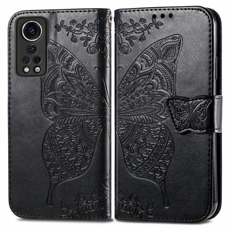 For ZTE Axon 30 5G Butterfly Love Flower Embossed Horizontal Flip Leather Case with Holder & Card Slots & Wallet & Lanyard(Black)