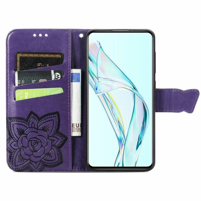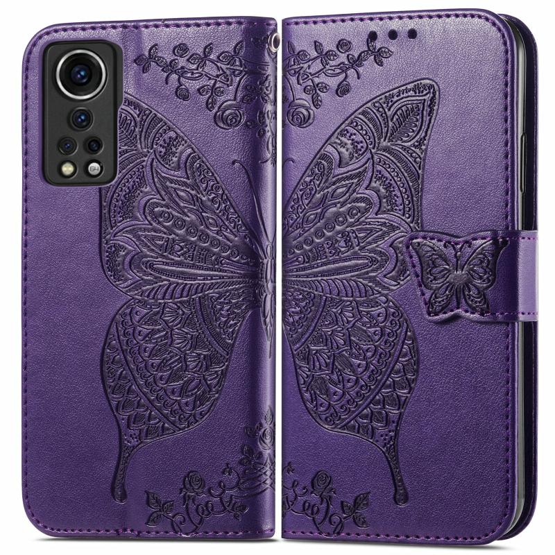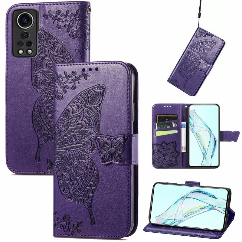 For ZTE Axon 30 5G Butterfly Love Flower Embossed Horizontal Flip Leather Case with Holder & Card Slots & Wallet & Lanyard(Dark Purple)
