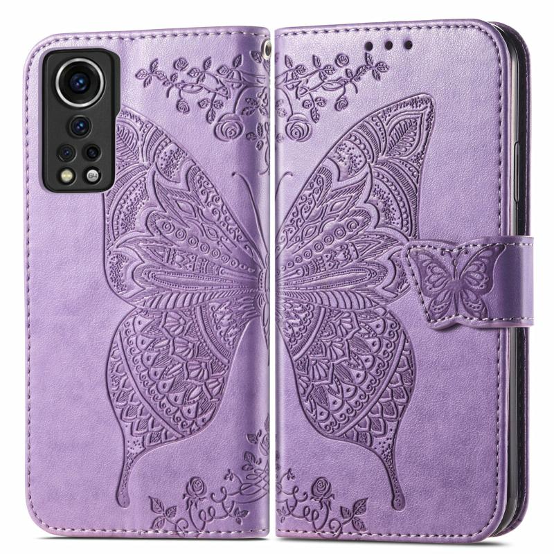 For ZTE Axon 30 5G Butterfly Love Flower Embossed Horizontal Flip Leather Case with Holder & Card Slots & Wallet & Lanyard(Light Purple)