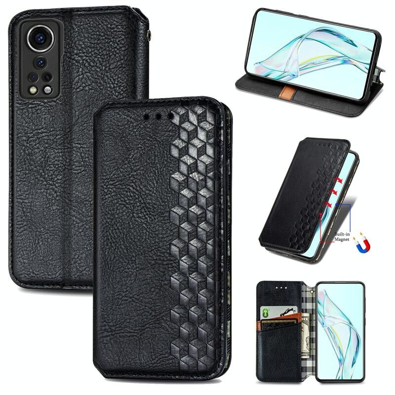 For ZTE Axon 30 5G Cubic Grid Pressed Horizontal Flip Magnetic PU Leather Case with Holder & Card Slots & Wallet(Black)