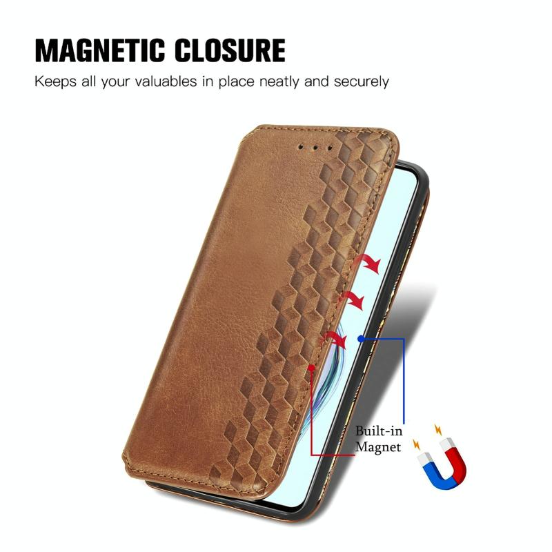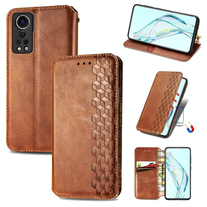For ZTE Axon 30 5G Cubic Grid Pressed Horizontal Flip Magnetic PU Leather Case with Holder & Card Slots & Wallet(Brown)