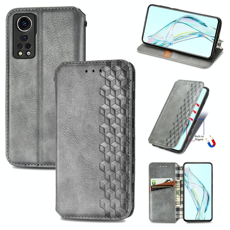 For ZTE Axon 30 5G Cubic Grid Pressed Horizontal Flip Magnetic PU Leather Case with Holder & Card Slots & Wallet(Grey)