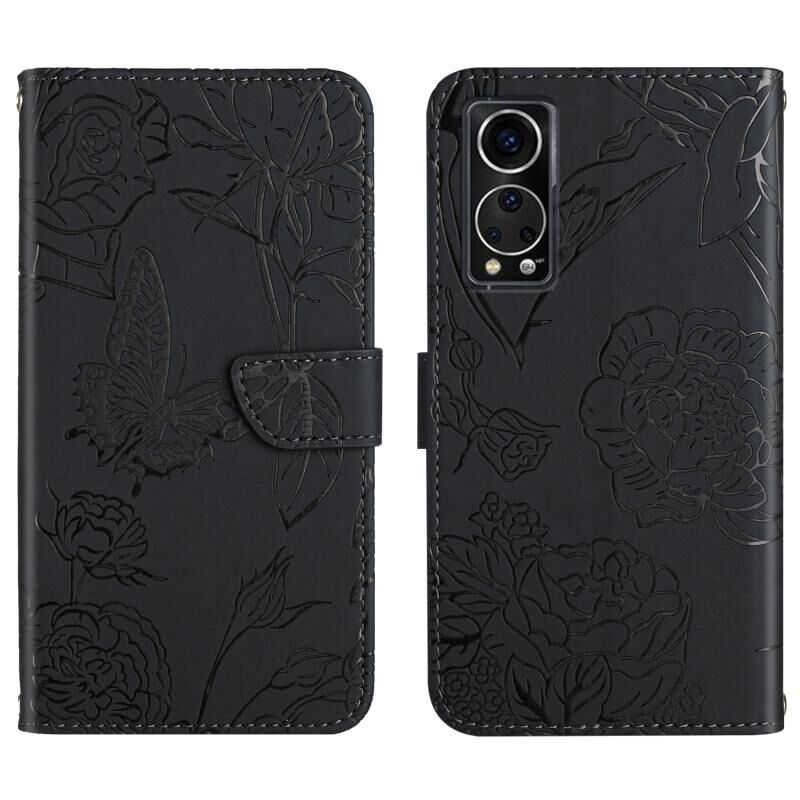For ZTE Axon 30 5G Skin Feel Butterfly Peony Embossed Leather Phone Case(Black)