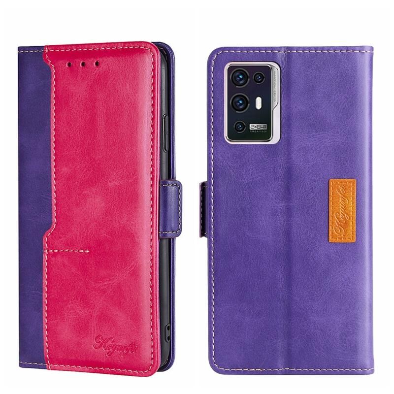 Για ZTE Axon 30 Pro Αντίθετο χρώμα πλευρά πόρπη δερμάτινη θήκη τηλεφώνου υπόθεση (μωβ + Rose Red)