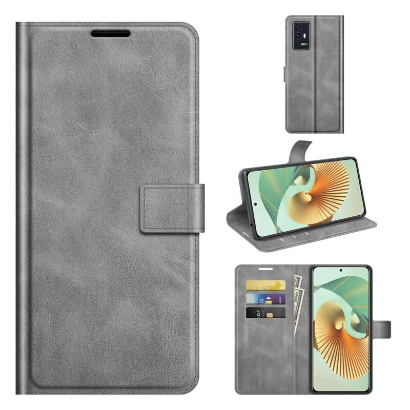 Για ZTE Axon 30 Pro Retro μοσχάρι μοτίβο πόρπη οριζόντια Flip δερμάτινη θήκη με κάτοχο & υποδοχές για κάρτες & πορτοφόλι (γκρι)
