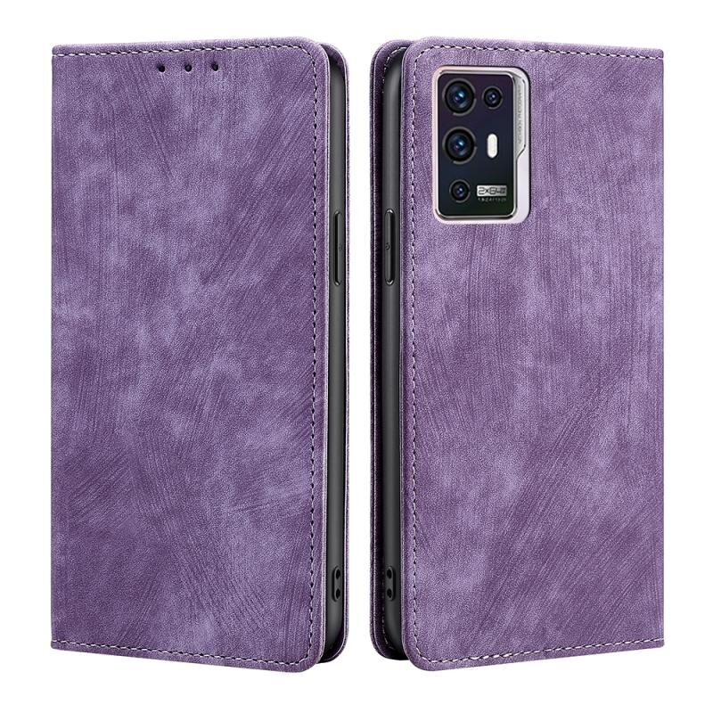 Για ZTE Axon 30 Pro RFID Anti-theft Brush Μαγνητική δερμάτινη θήκη τηλεφώνου (μωβ)