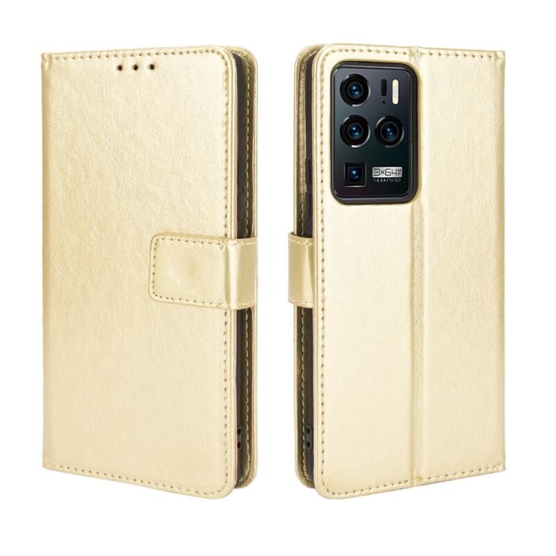 Για ZTE Axon 30 Ultra 5G Crazy Horse Υφή οριζόντια Flip δερμάτινη θήκη με θήκη & υποδοχές καρτών & κορδόνι (χρυσό)