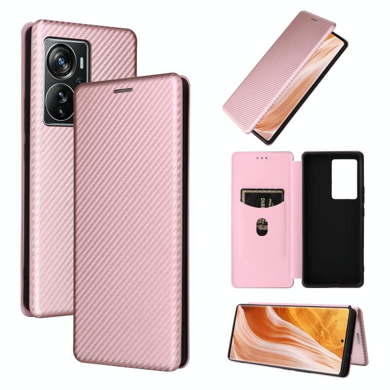 Για ZTE Axon 40 Pro Carbon Fiber Texture Leather Phone Case (ροζ)