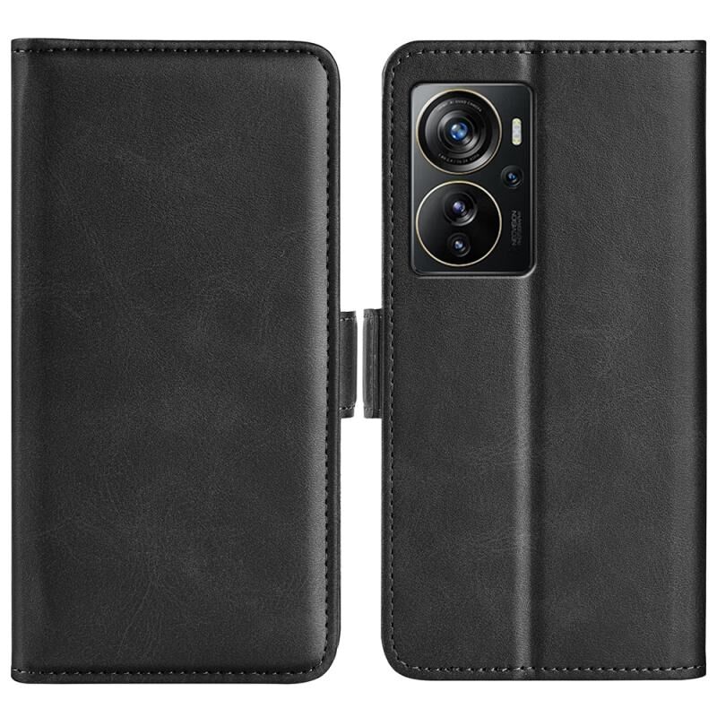 Για το ZTE Axon 40 Pro διπλής όψης μαγνητική πόρπη οριζόντια Flip δερμάτινη θήκη τηλεφώνου (μαύρο)
