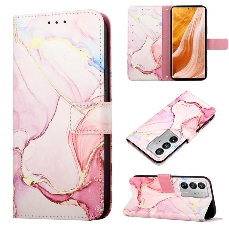 Θήκη τηλεφώνου από δέρμα με σχέδιο μάρμαρου για ZTE Axon 40 Ultra PT003 (Ροζ Μωβ Χρυσό LS001)