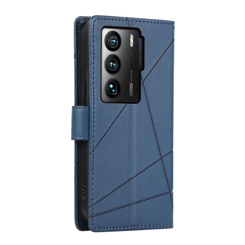 Θήκη τηλεφώνου ZTE Axon 40 Ultra από γνήσιο δέρμα PU με ανάγλυφη υφή και λεπτομέρειες γραμμής (Μπλε)