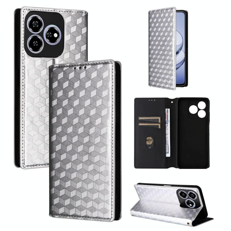For ZTE Axon 60 4G / Blade V60 4G Cubic Grid Texture Flip Leather Phone Case(Silver)