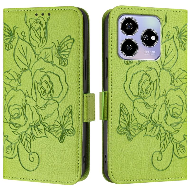 For ZTE Axon 60 4G Embossed Rose RFID Anti-theft Leather Phone Case(Green)