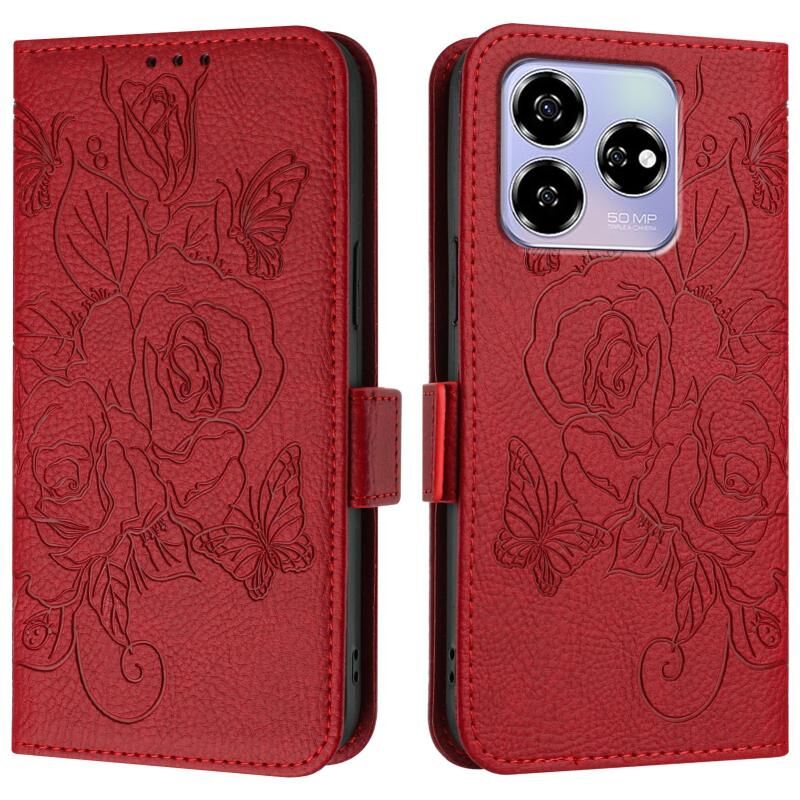 For ZTE Axon 60 4G Embossed Rose RFID Anti-theft Leather Phone Case(Red)