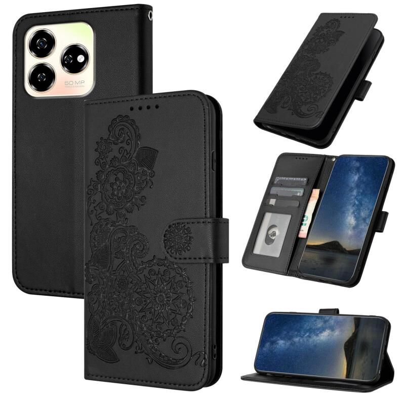 For ZTE Axon 60 Datura Flower Embossed Flip Leather Phone Case(Black)