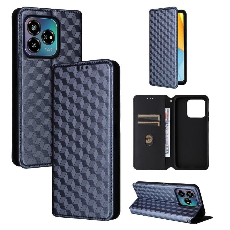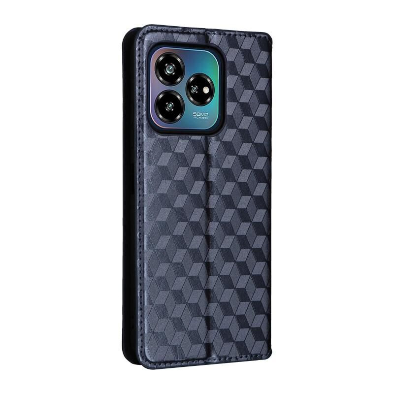 For ZTE Axon 60 Lite / Blade V60 Vita Cubic Grid Texture Flip Leather Phone Case(Blue)