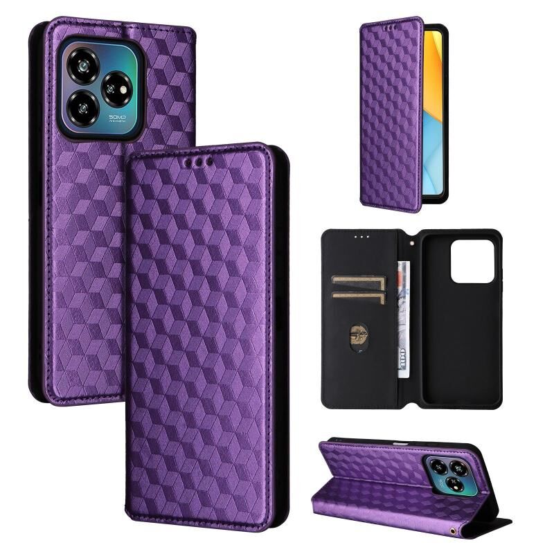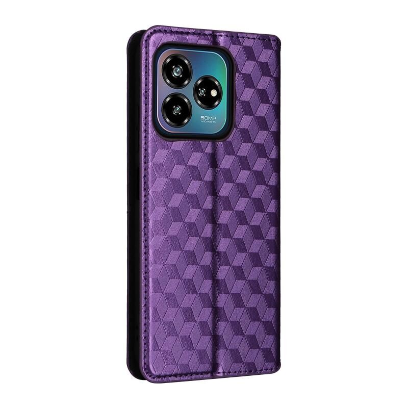 For ZTE Axon 60 Lite / Blade V60 Vita Cubic Grid Texture Flip Leather Phone Case(Purple)