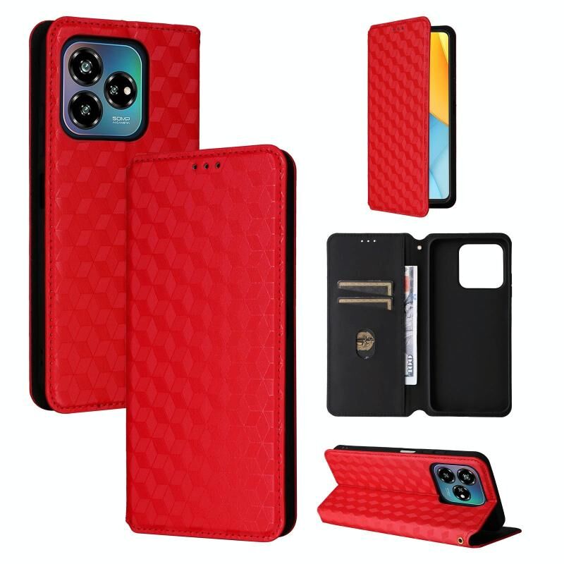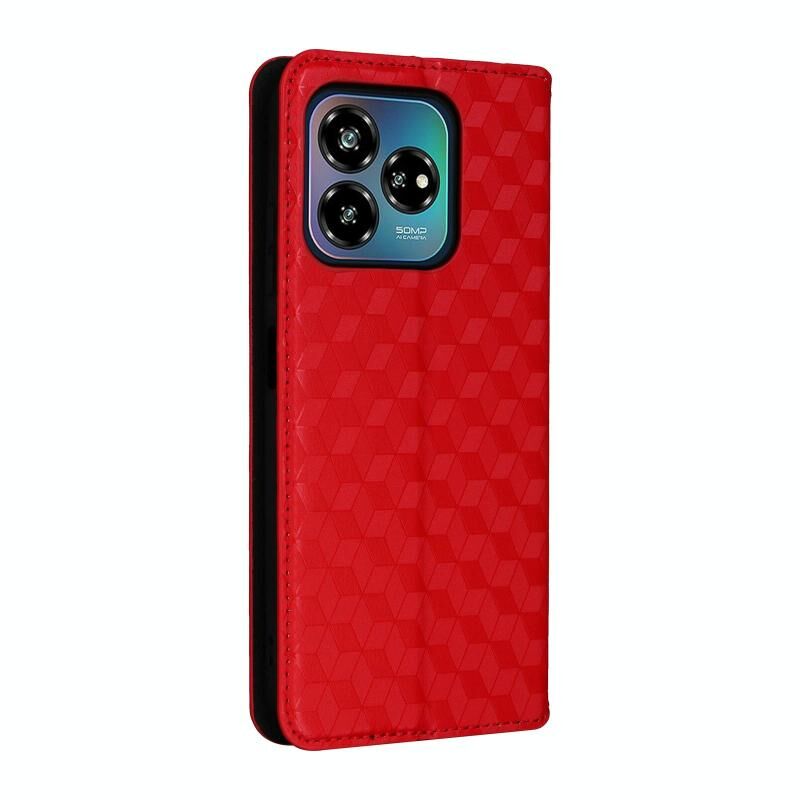For ZTE Axon 60 Lite / Blade V60 Vita Cubic Grid Texture Flip Leather Phone Case(Red)