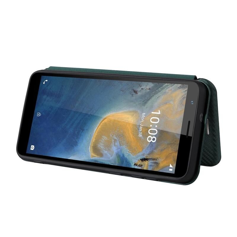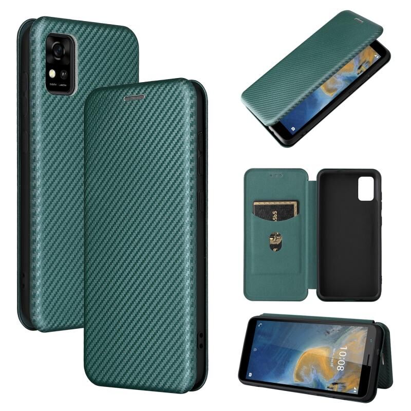Για ZTE Blade A31 Carbon Fiber υφή οριζόντια Flip TPU + PC + PU δέρμα υπόθεση με υποδοχή κάρτας (πράσινο)