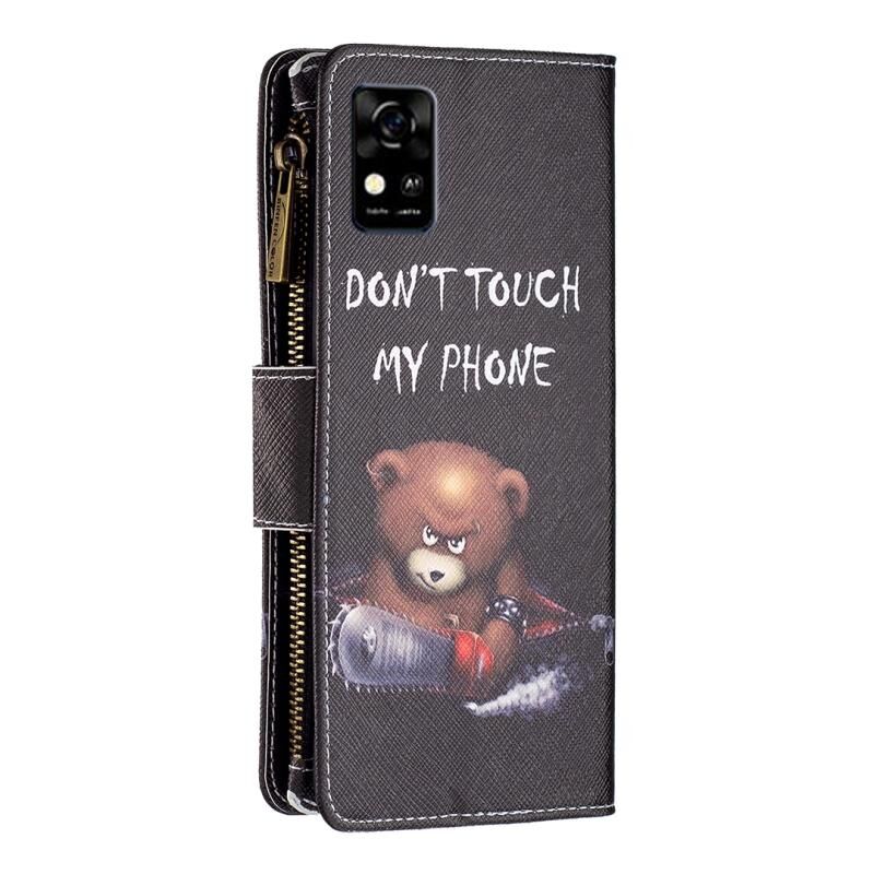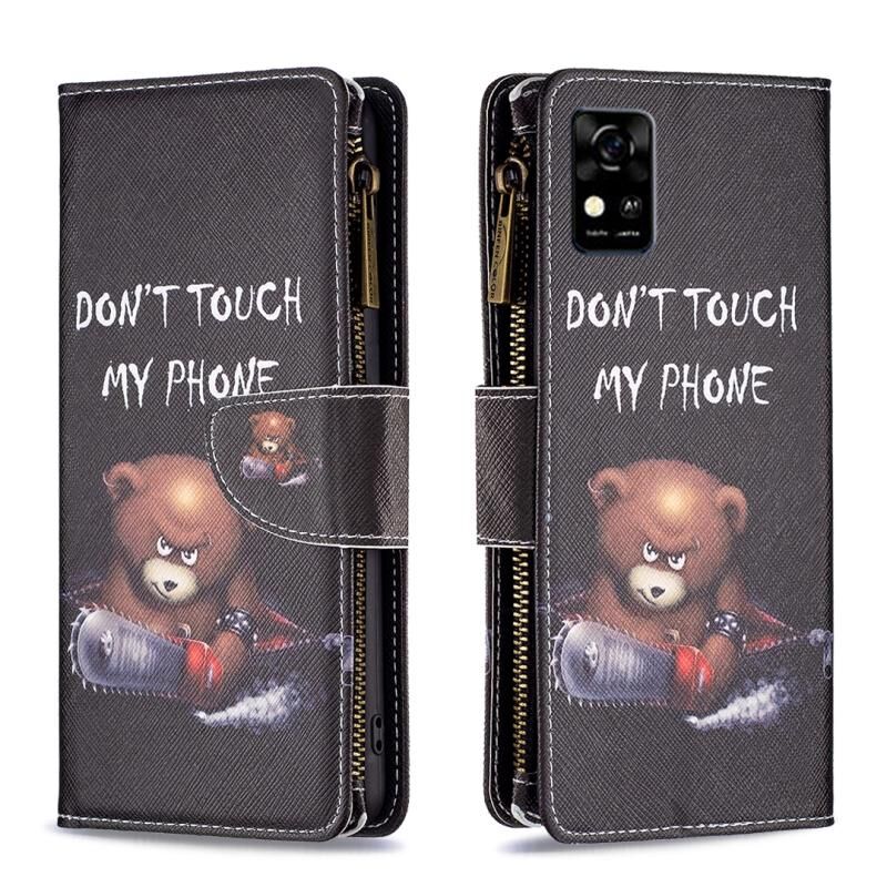 Θήκη δέρματος οριζόντιας αναδίπλωσης με φερμουάρ και πολύχρωμο σχέδιο για ZTE Blade A31 (Αρκούδα)