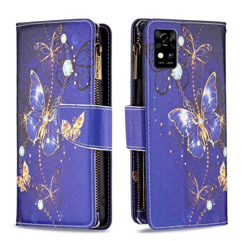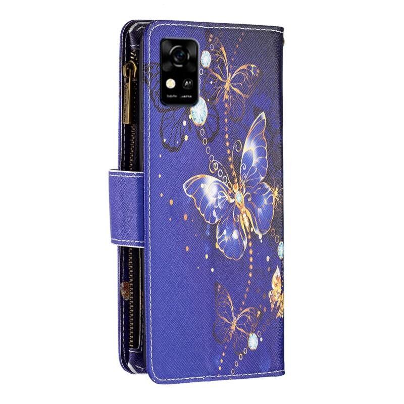 Για ZTE Blade A31 Θήκη Δερμάτινη Οριζόντια με Φερμουάρ και Πολύχρωμο Σχέδιο (Μωβ Πεταλούδα)