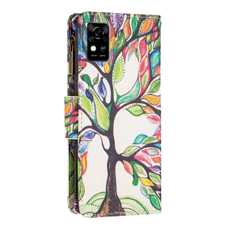 Θήκη δέρματος οριζόντιας ανατροπής με φερμουάρ και πολύχρωμο σχέδιο για ZTE Blade A31 (Δέντρο)