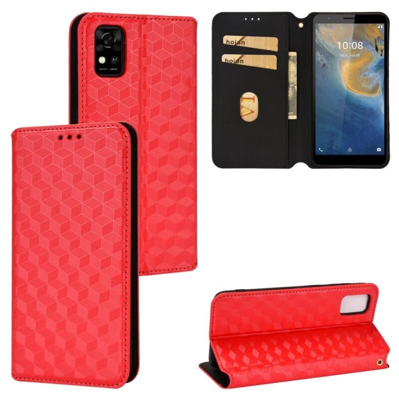 For ZTE Blade A31 Cubic Grid Texture Flip Leather Phone Case(Red)