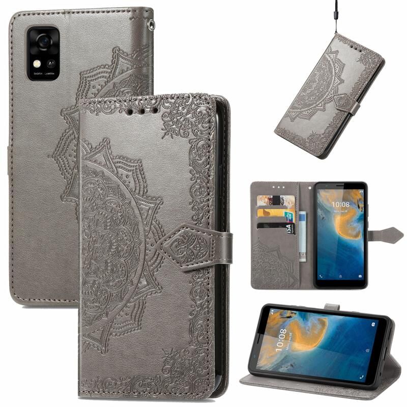 Για ZTE Blade A31 Mandala λουλούδι ανάγλυφο οριζόντια Flip δερμάτινη θήκη τηλεφώνου (γκρι)