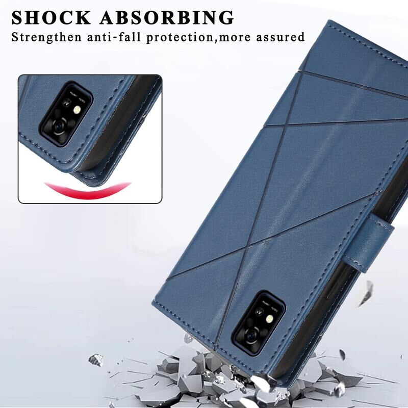 Θήκη τηλεφώνου ZTE Blade A31 PU με ανάγλυφη υφή δέρματος και λεπτομέρειες γραμμής (Μπλε)