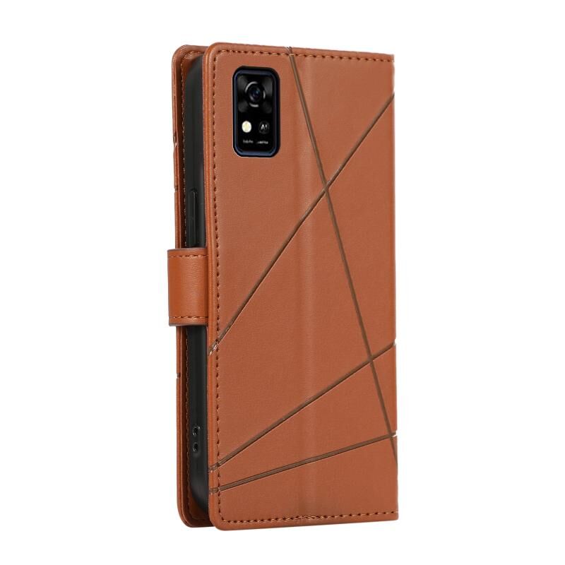 Θήκη τηλεφώνου ZTE Blade A31 PU με ανάγλυφη υφή δέρματος και λεπτομέρειες γραμμής (Μπλε)