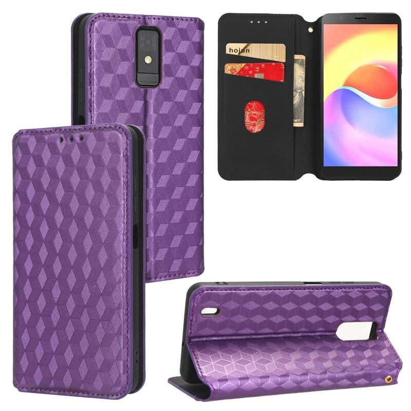 For ZTE Blade A32 Cubic Grid Texture Flip Leather Phone Case(Purple)