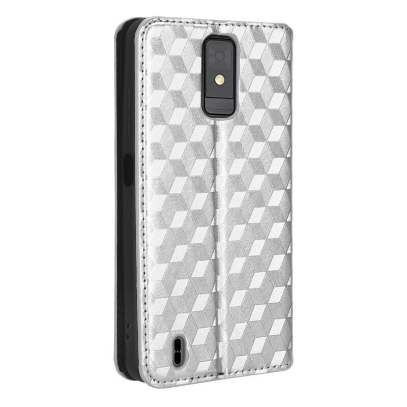 For ZTE Blade A32 Cubic Grid Texture Flip Leather Phone Case(Silver)