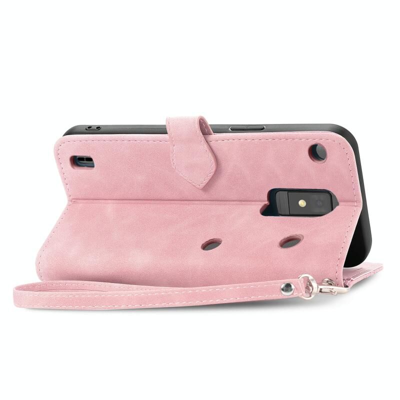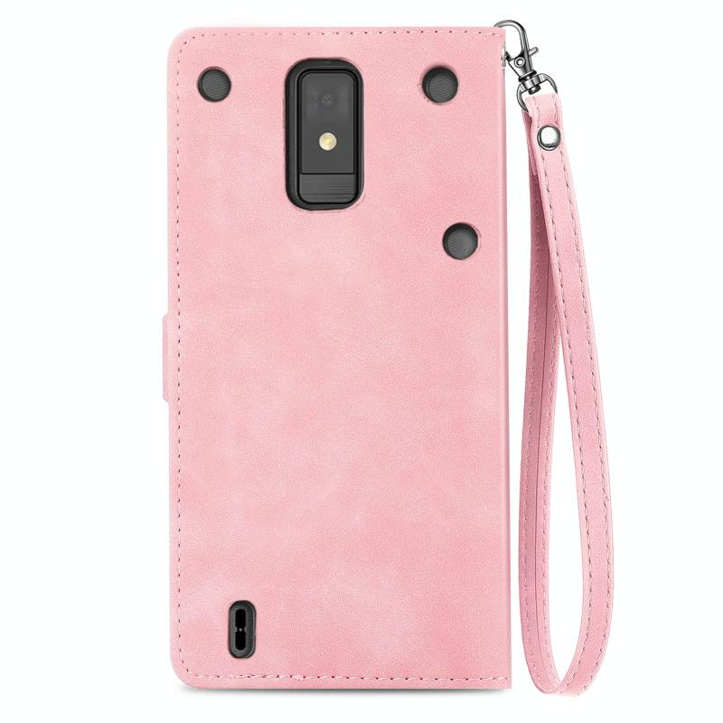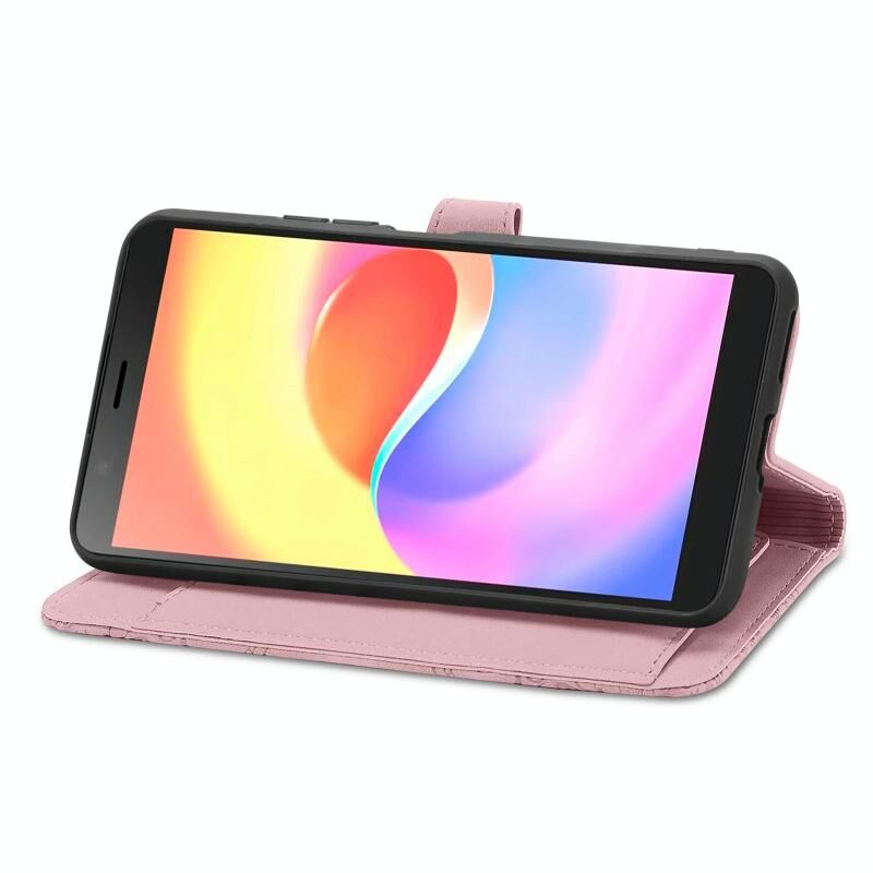 For ZTE Blade A32 Embossed Flower Zipper Leather Phone Case(Pink)