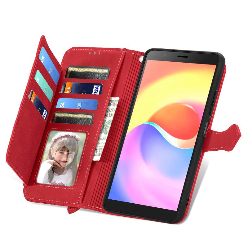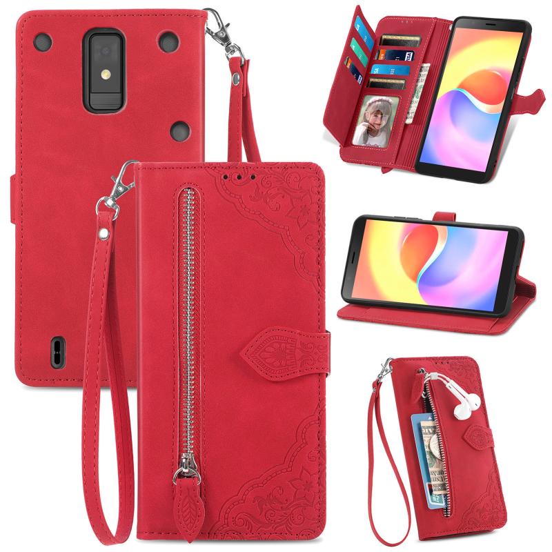 For ZTE Blade A32 Embossed Flower Zipper Leather Phone Case(Red)