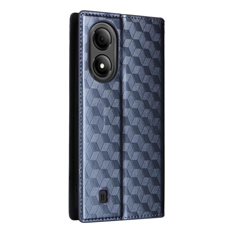 For ZTE Blade A33s Cubic Grid Texture Flip Leather Phone Case(Blue)